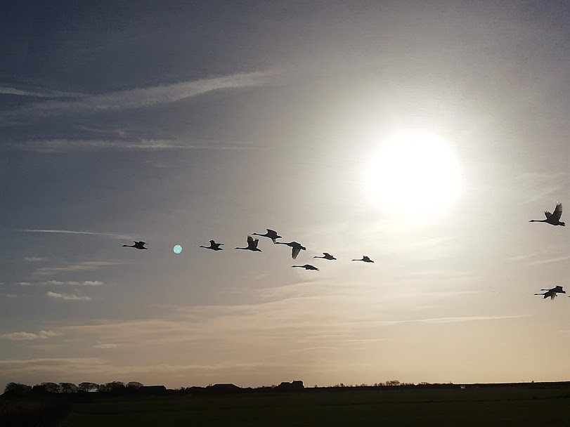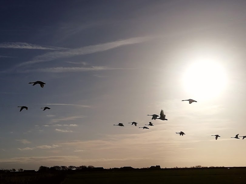 Added bonus - it was low tide while we were there, which means we could walk out across the tidal flats and 'touch the lighthouse'. The swans in the the fields behind the sea wall were present in their usual droves and put on some spectacular aerobatic displays.