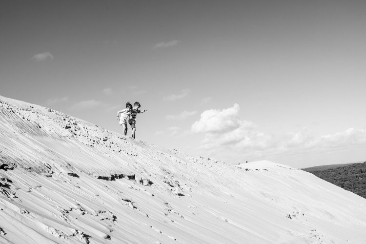 The dune is incredible, it’s an almost vertical ascent to wonderful views across the spine of the dune and down to the ocean on the other side. While the parents caught their breath the children were gone, only to be found again paddling in the Atlantic.